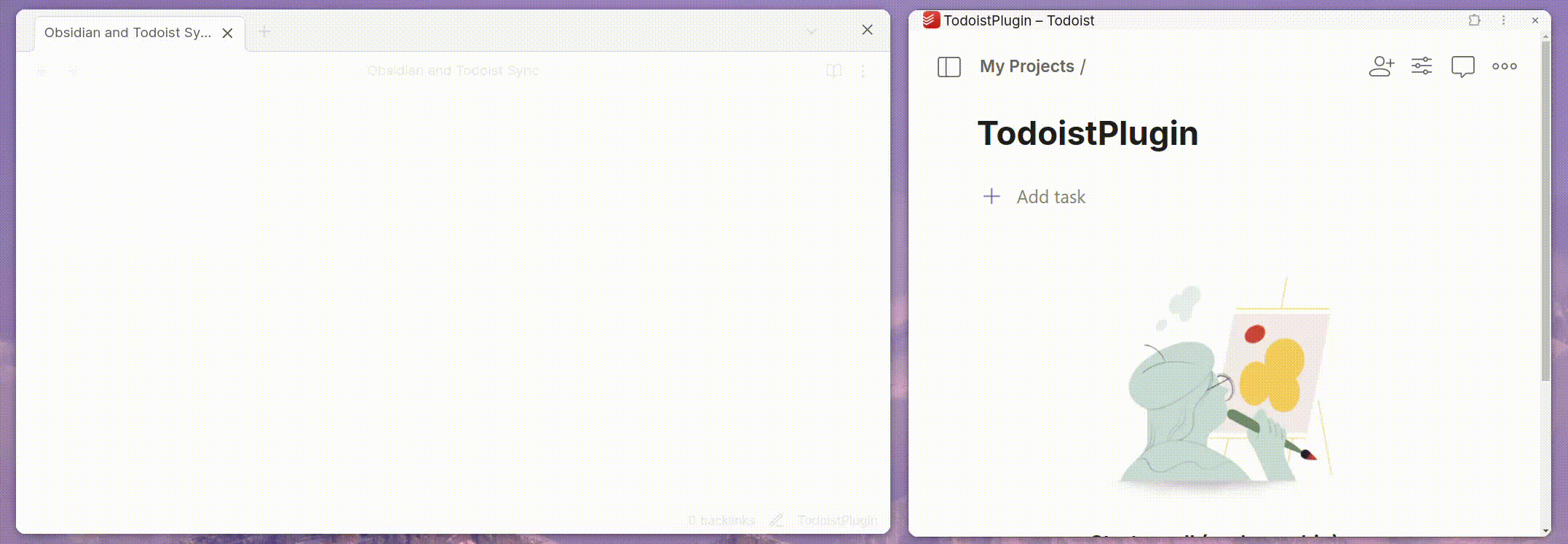 [!CAUTION] In early April 2025, this plugin was no longer working due to changes on the Todoist API. Check this comment for more details. Feel free to open bug reports.