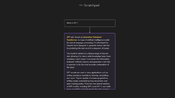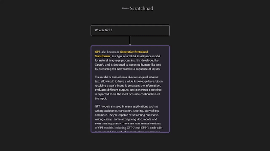 - Ask question about a note. Also makes GPT generate a new note, the question is placed on the link between the two notes.
