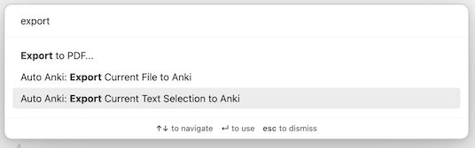Exporting Highlighted Text to Anki (Command: Export Highlighted Text to Anki)