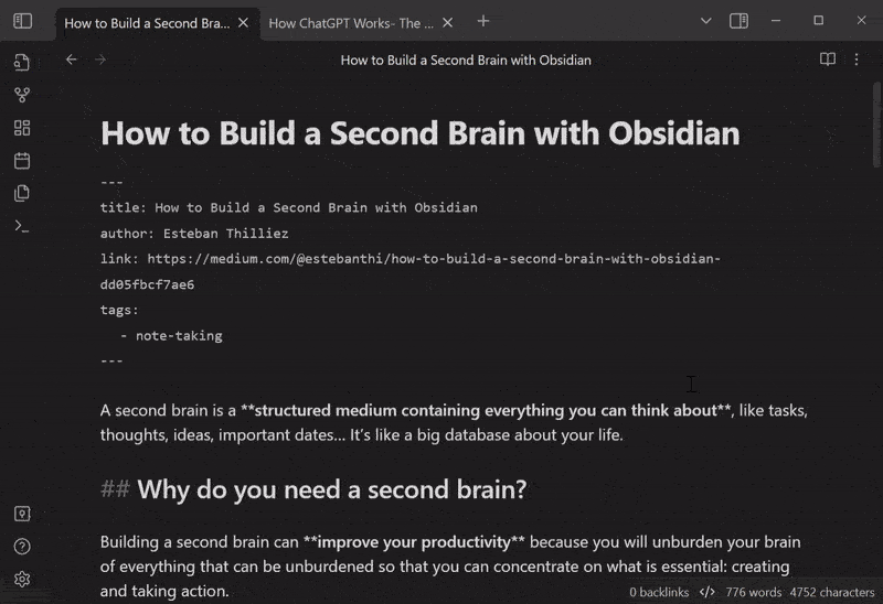 Automatically classify tag from your notes using ChatGPT API. It analyze your note (It can be title, frontmatter, content or selected area) and automatically insert tag where you set.