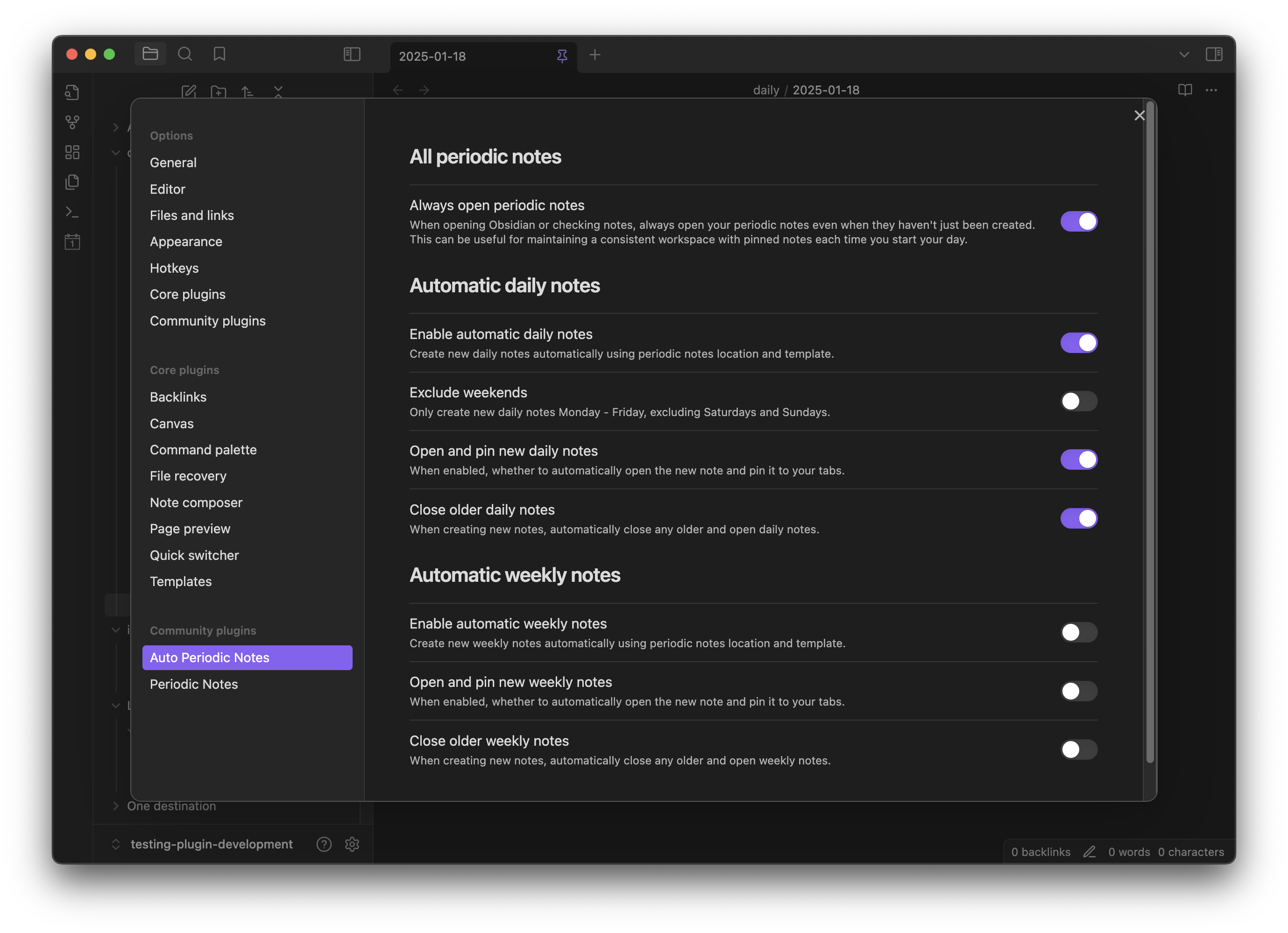 - Can exclude weekends from daily note generation