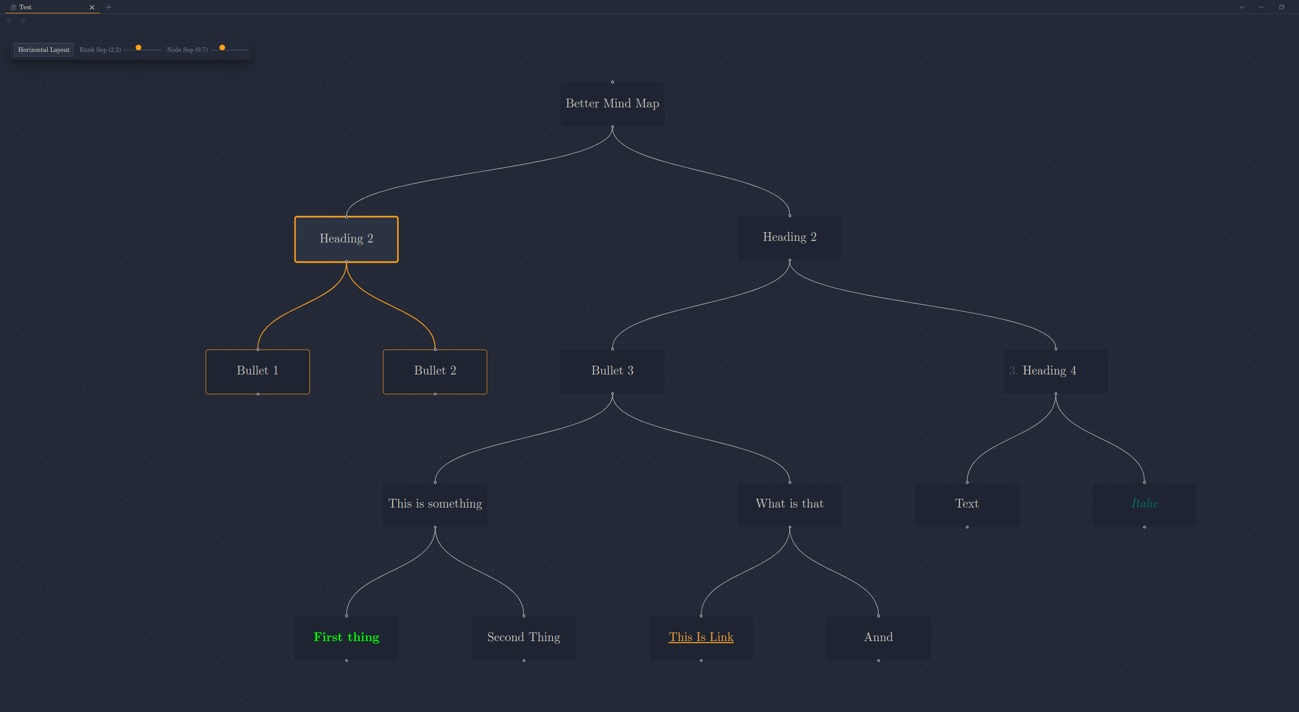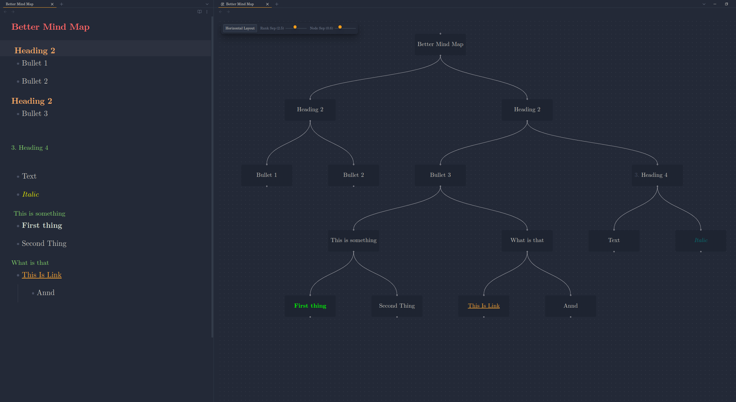 - Live Updates: The mind map automatically updates to reflect the content of the currently active Markdown note as you edit / navigate within Obsidian.