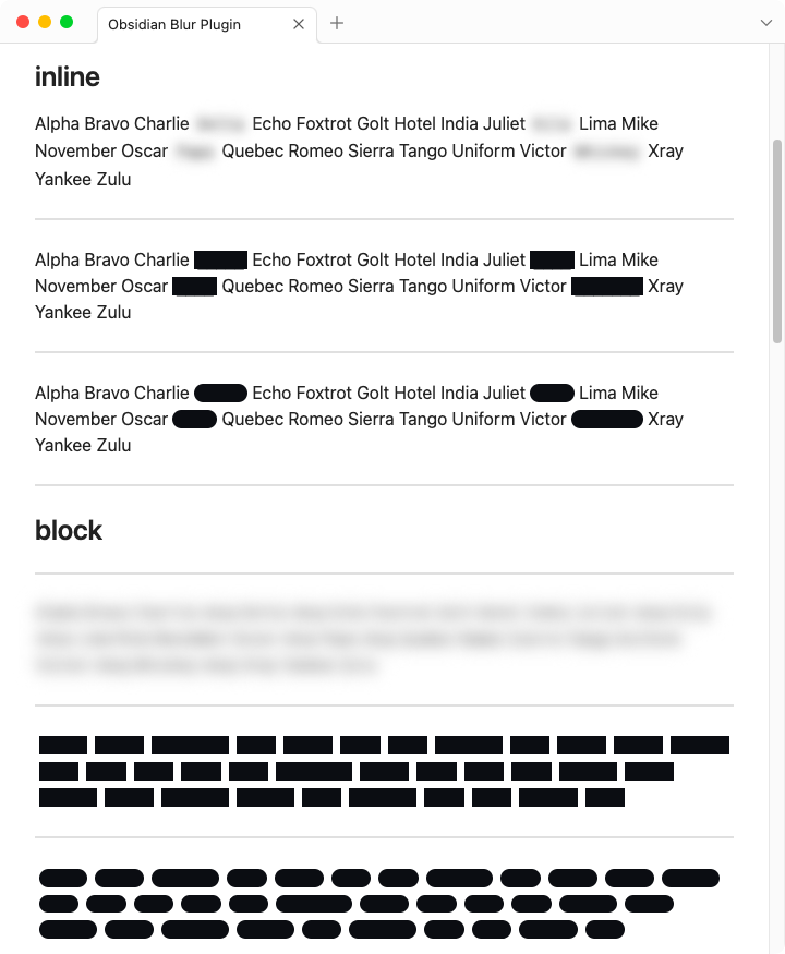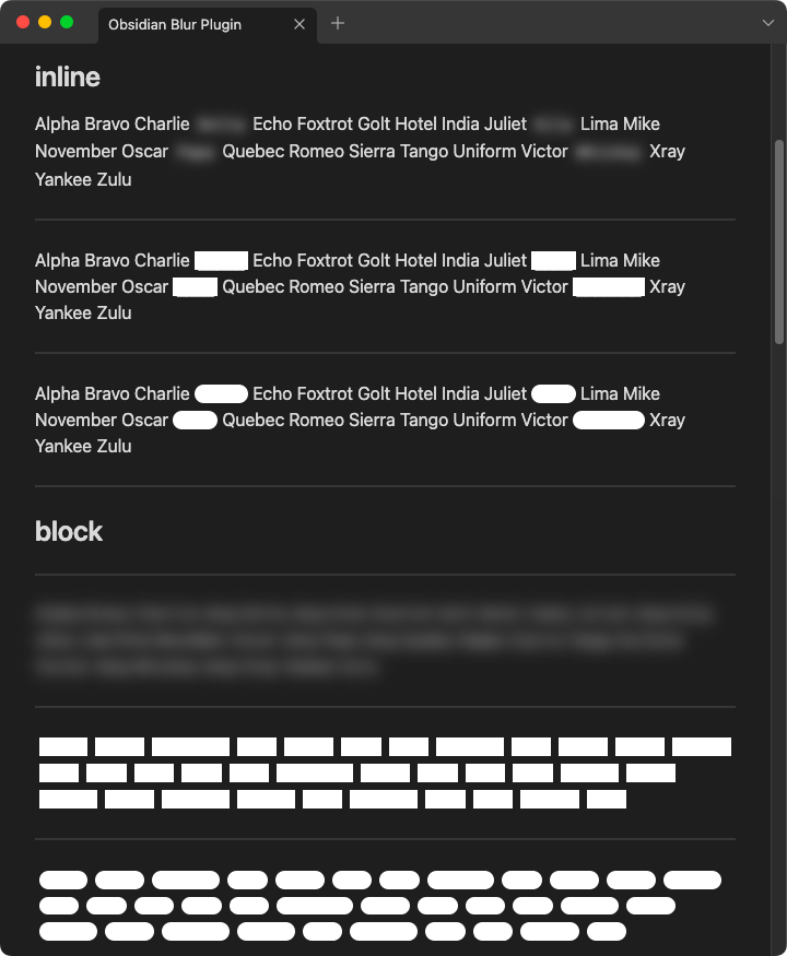 Light-weight Obsidian.md plugin for creating obfuscated blocks of text.