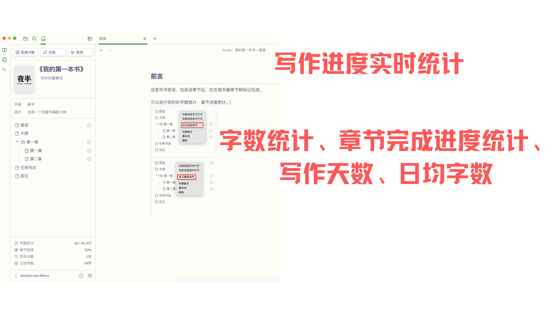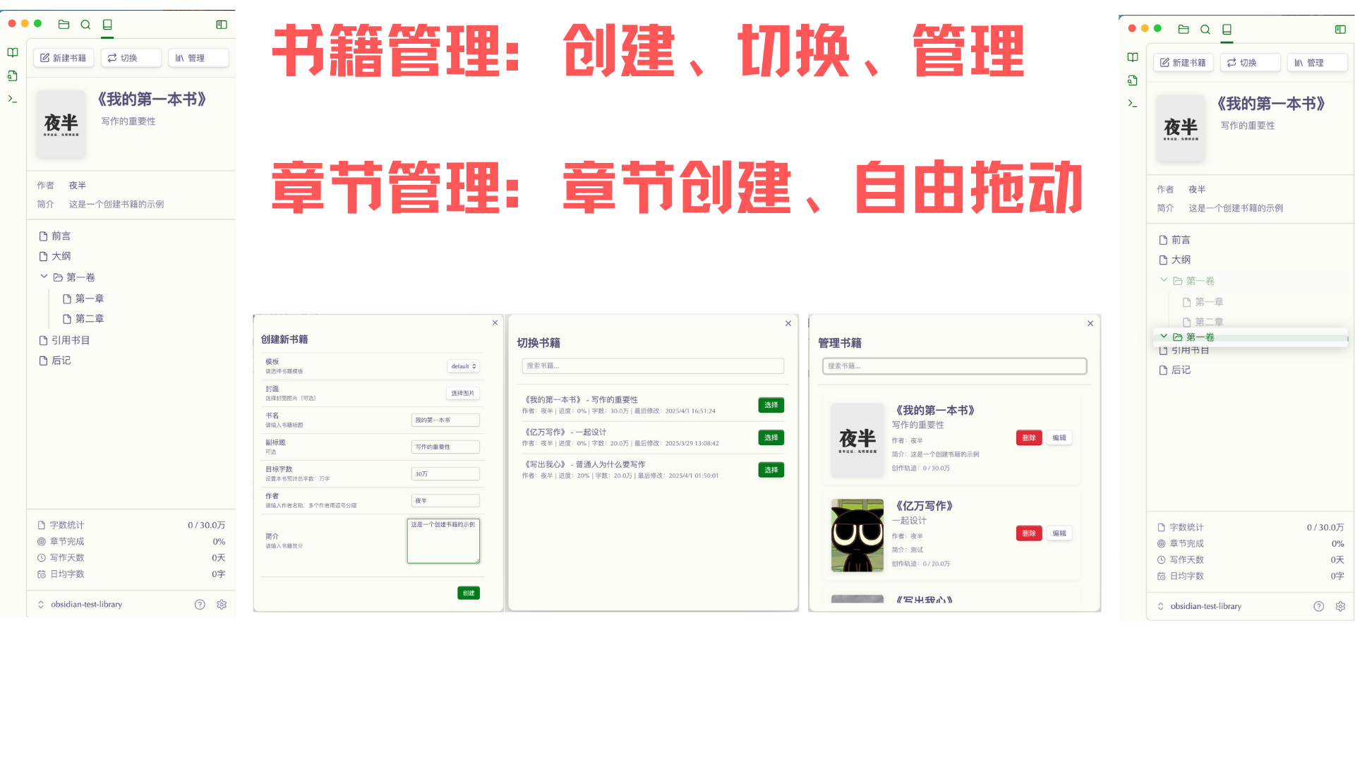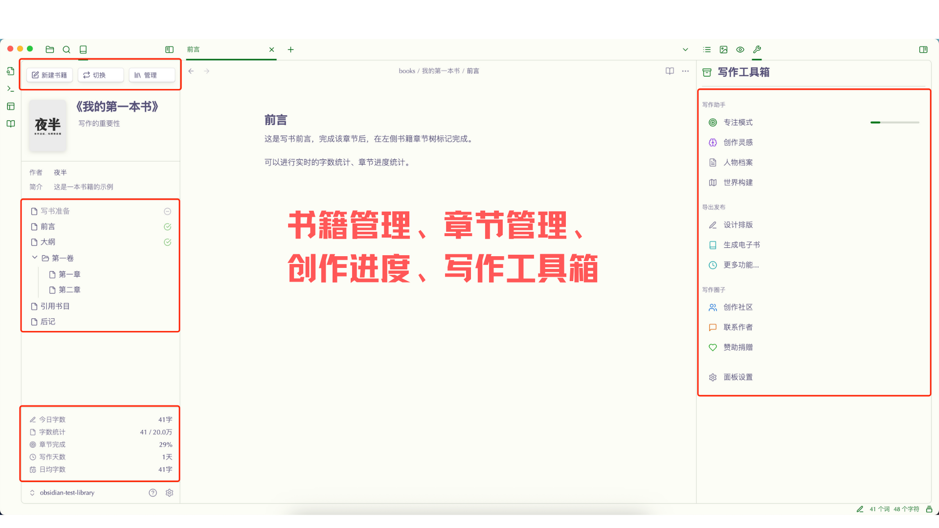 Book Smith 是一个专为 Obsidian 设计的写作管理插件。它能帮助作者更好地组织和管理他们的写作项目。
