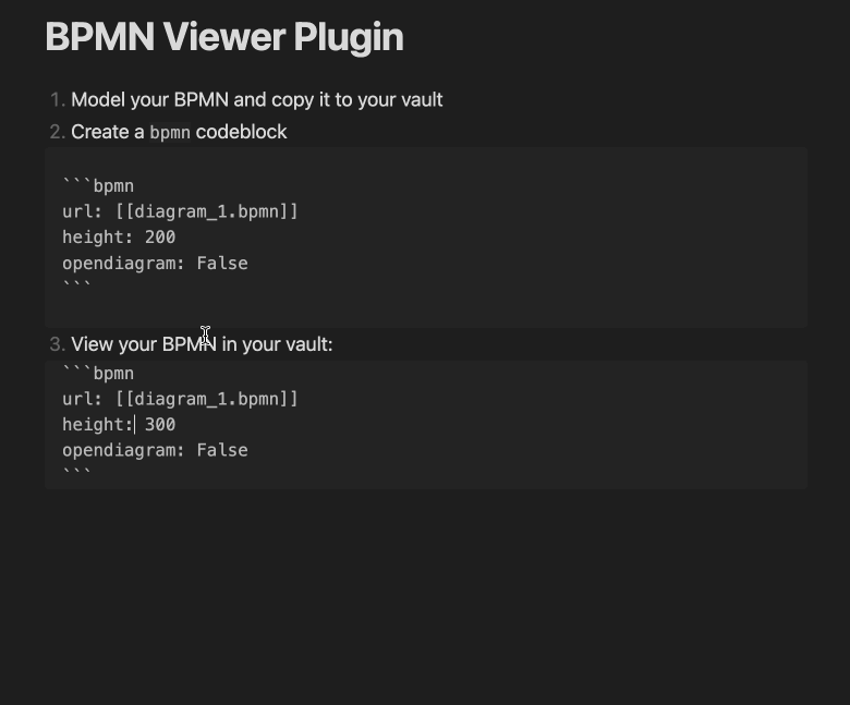 *.bpmnfile to your vault - Add the BPMN diagram to your note: