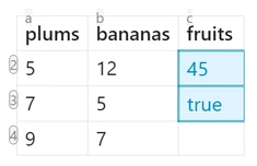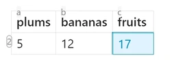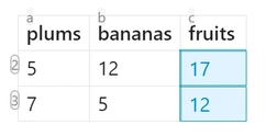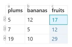 | 5 | 12 | =sum(1c2:2c4) |