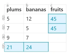 | 5 | 12 | =[a2:a4]+[b2:b4] |
