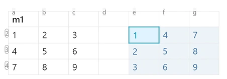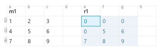 [a1:c3]preserves 2D structure for matrix operations If the result is a vector or matrix, the output expands to multiple cells, and references for those cells are automatically recomputed.