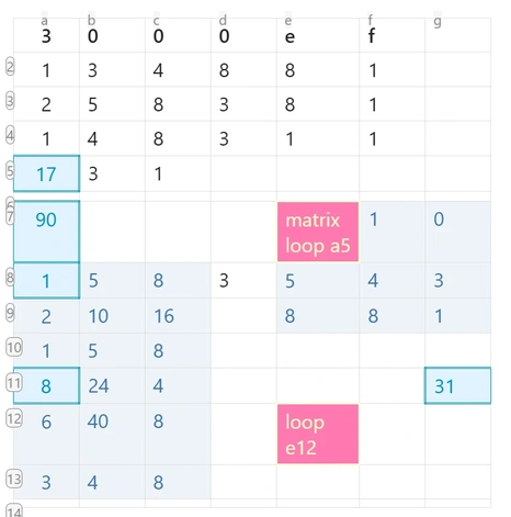 - Matrix cells: Special styling for cells filled by matrix operations