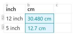 | 5 inch | =to(unit(a3), "cm") |
