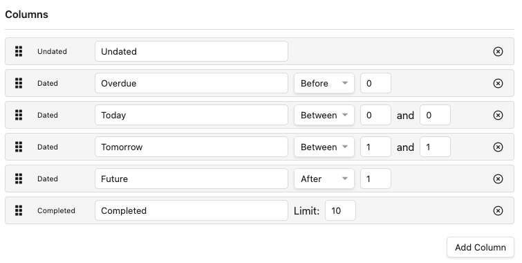 - Other Tags: include any tasks with tags that are not in one of the defined tag-based columns.