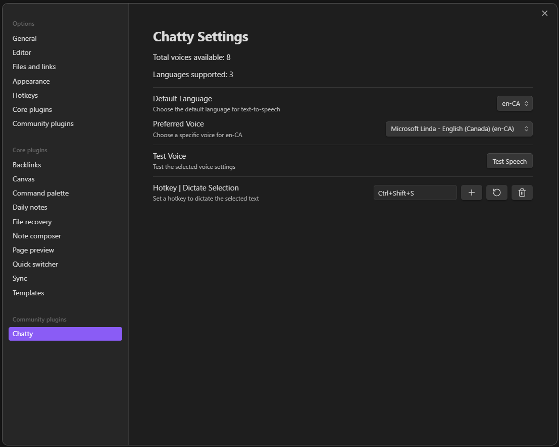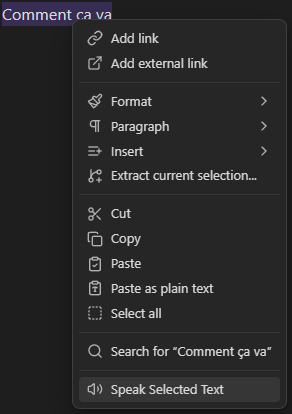 Allows you to listen to your notes using text-to-speech. Uses the browser's built-in speech synthesis capabilities and your default system voices.