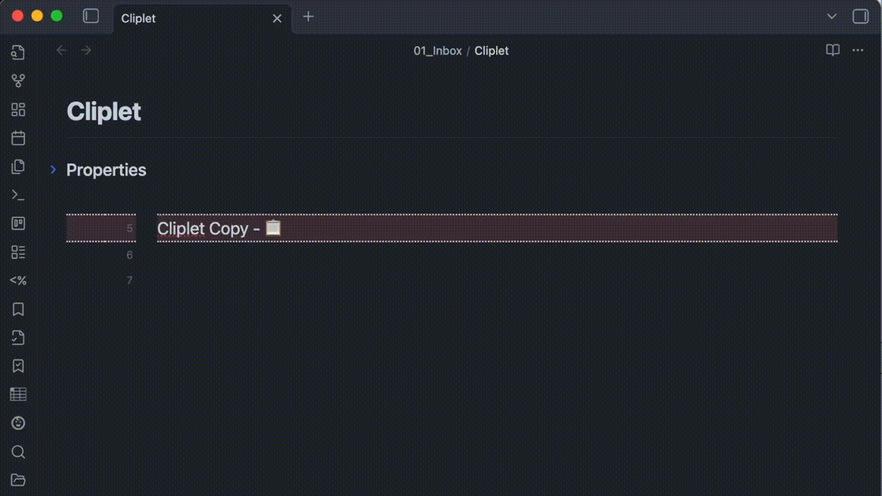 - Add a cliplet: Run the “Add cliplet” command after selecting text.