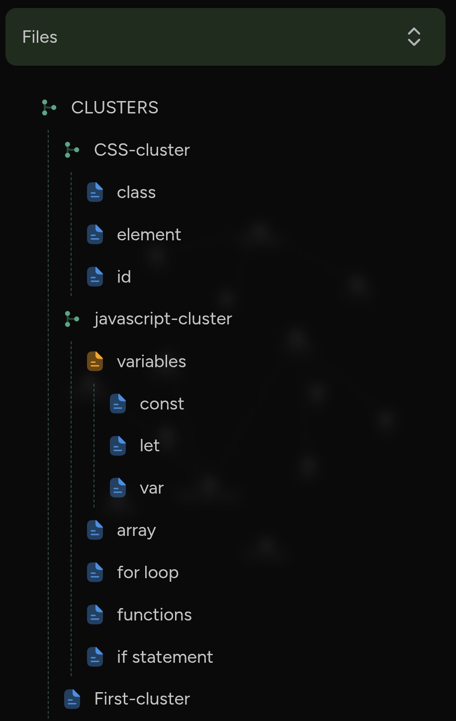 Note clustering is a way to create a hierarchy or structure among your notes, making it easier to navigate, search and understand the relationships between them.