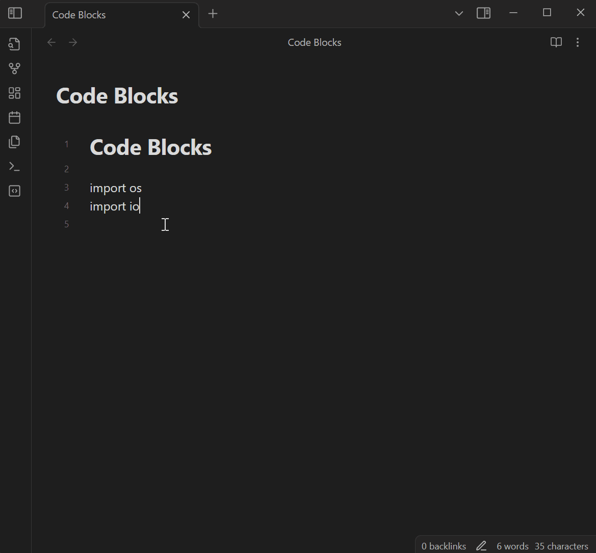 This is a plugin for Obsidian. Provide commands to insert code blocks with markup, and support triggering commands with backticks.