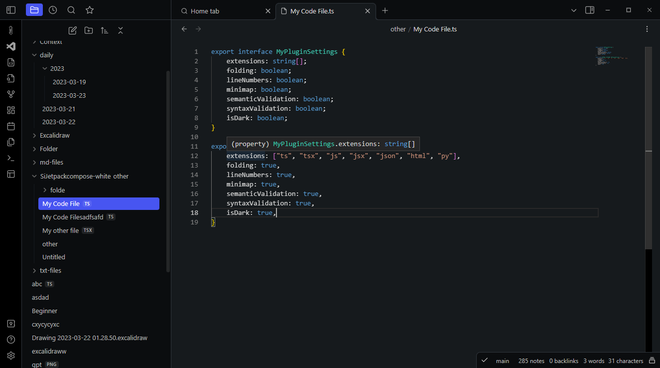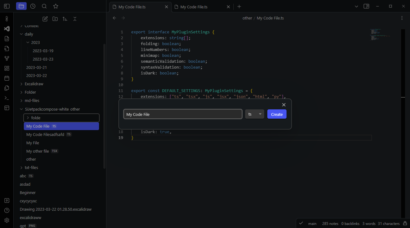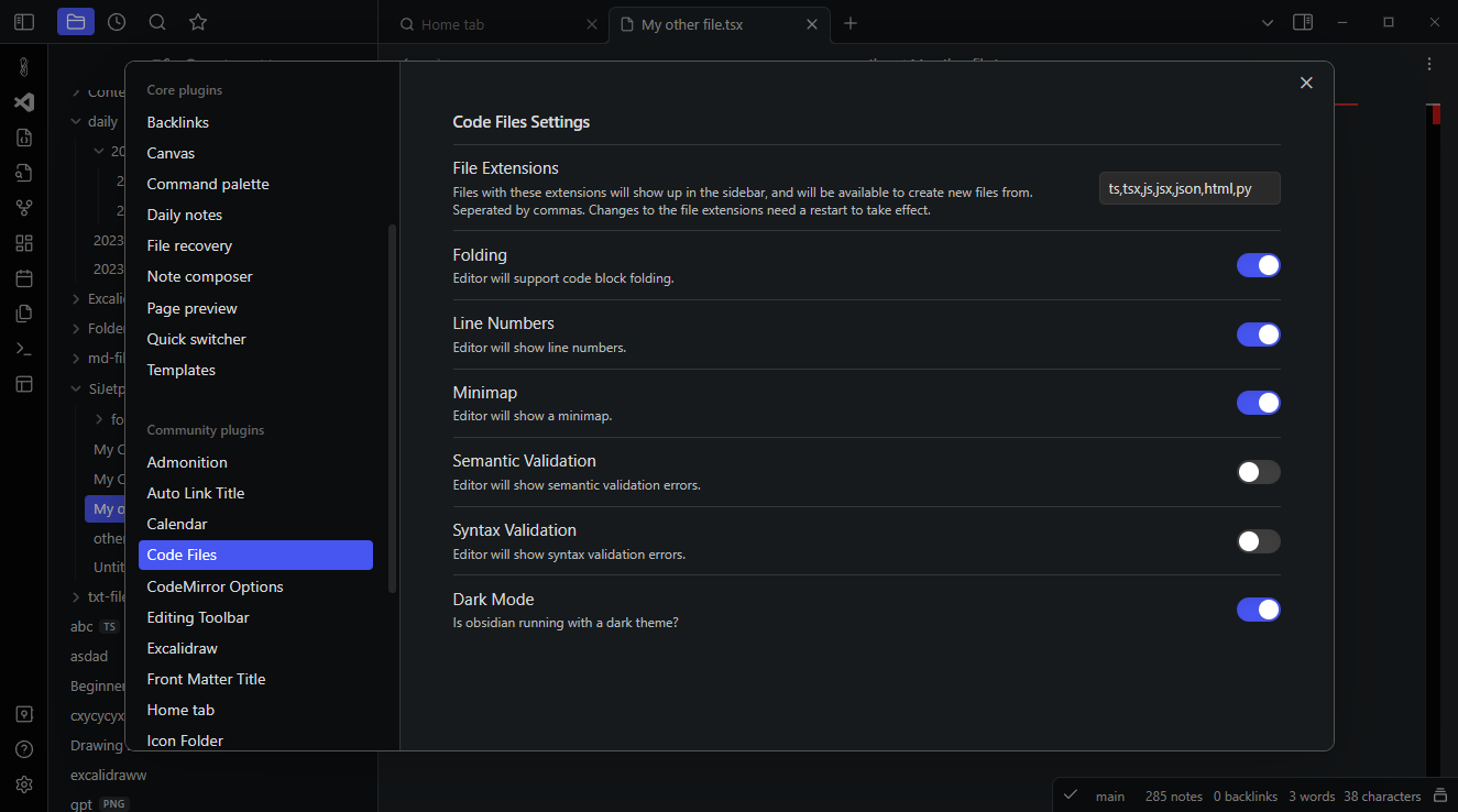 The plugin adds a code editor view to Obsidian. The code editor uses the powerful Monaco Editor, which also powers VS Code.