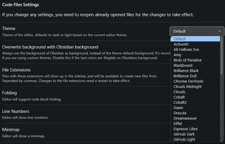 Besides the default themes that ship with VSCode, the plugin also supports a long list of custom well-established themes to choose from.