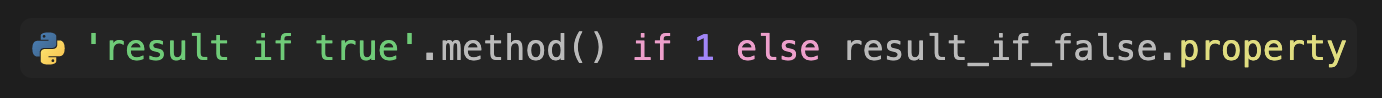 {python} 'result if true'.method() if 1 else result_if_false.property