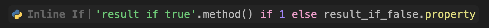 {python title:'Inline If' icon} 'result if true'.method() if 1 else result_if_false.property