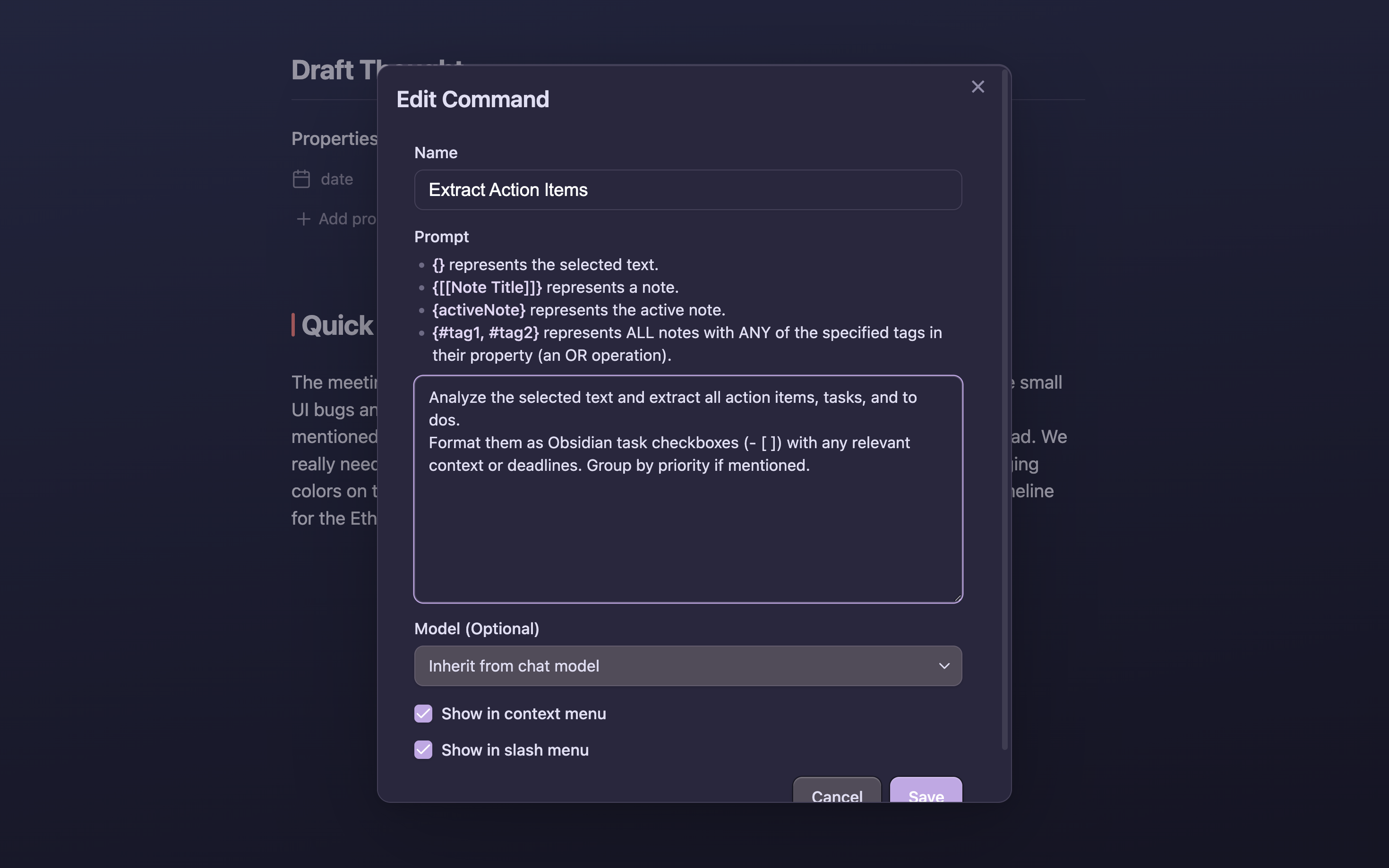 Create commands and workflows in Settings → Copilot → Command → Add Cmd.