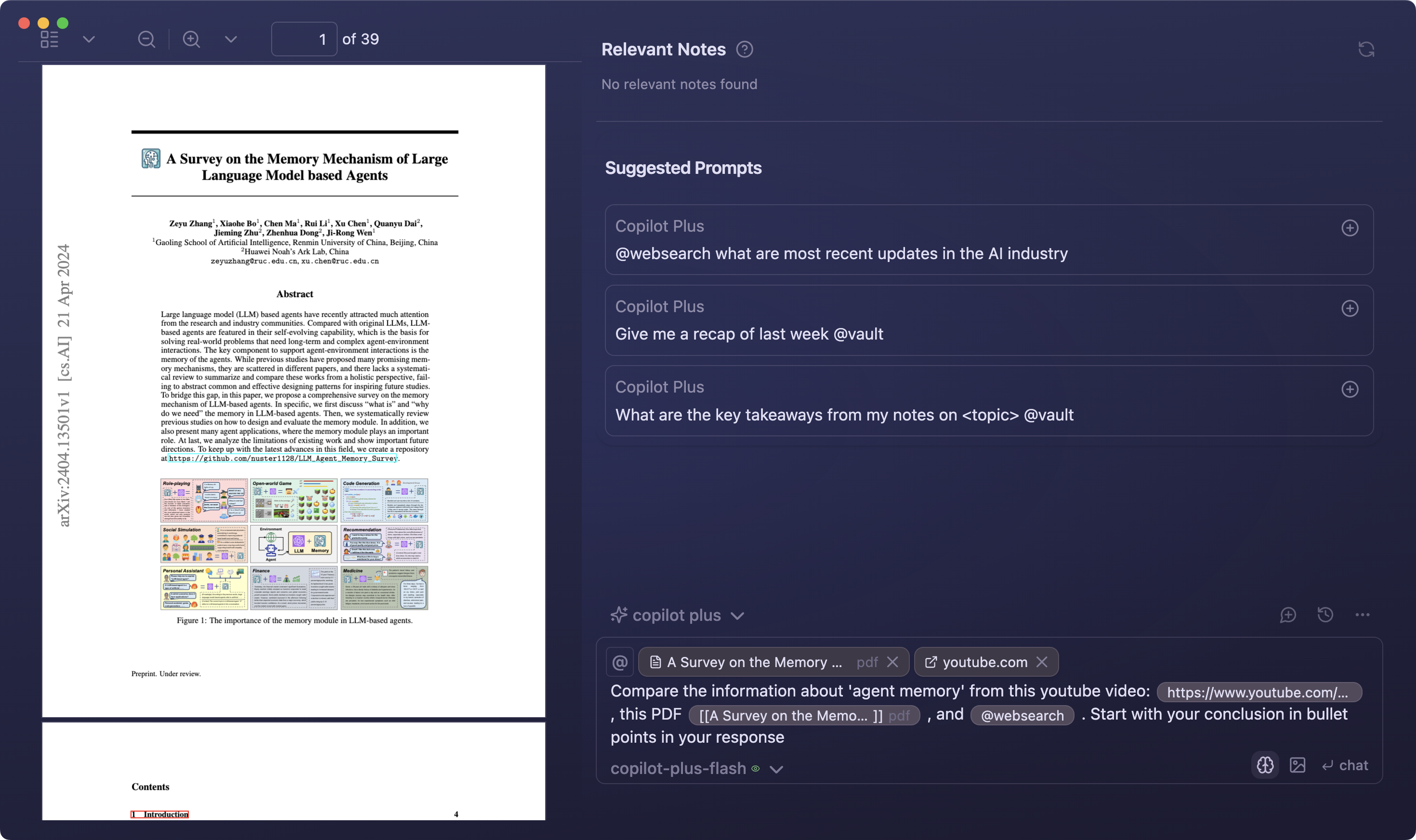- FOR PLUS USERS: Autonomous agent is available with vault search, web search, youtube, composer and soon a lot other tools! Long-term memory is also a tool the agent can use by itself starting from 3.1.0!