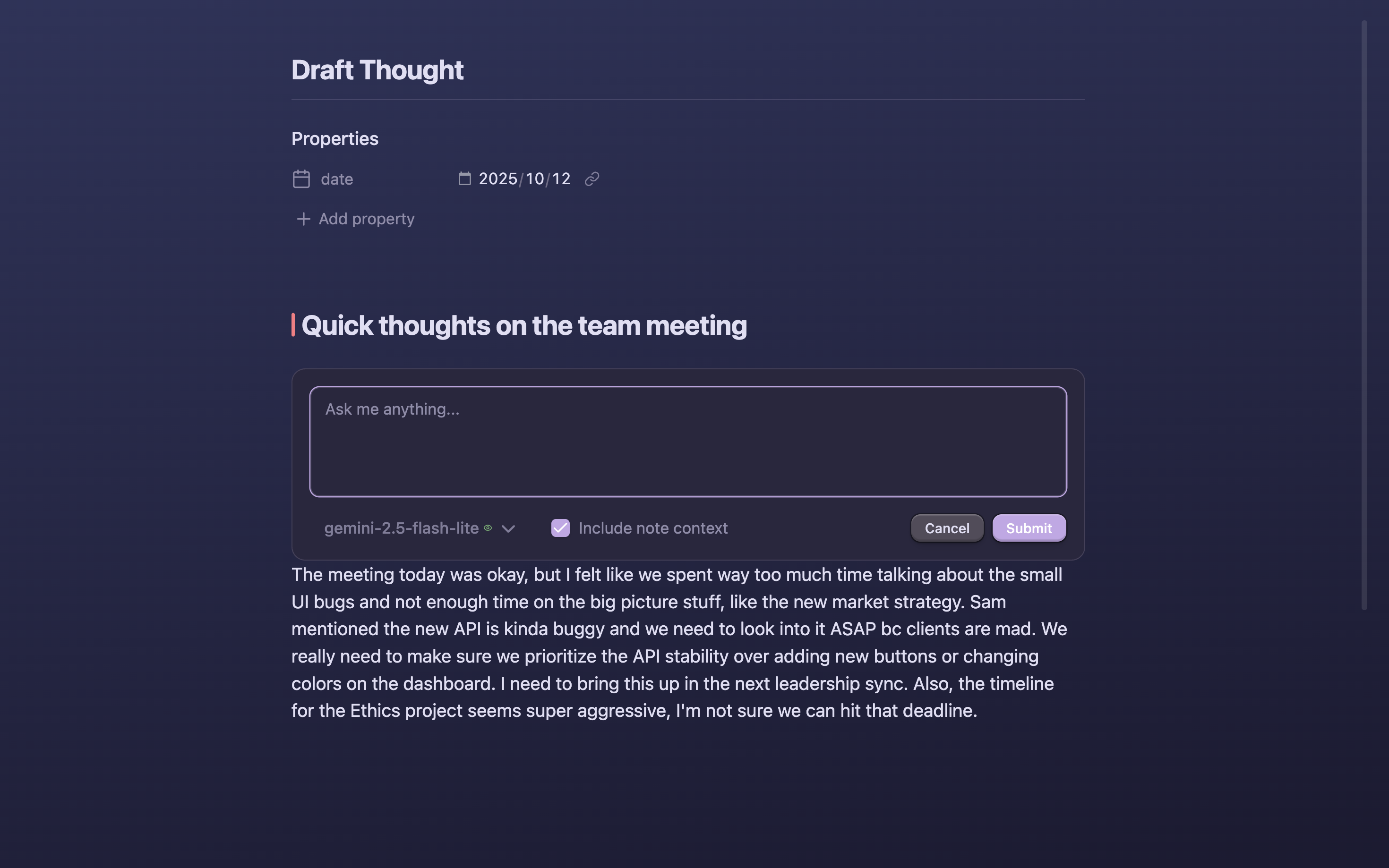 Use @ to add context and chat with your note.