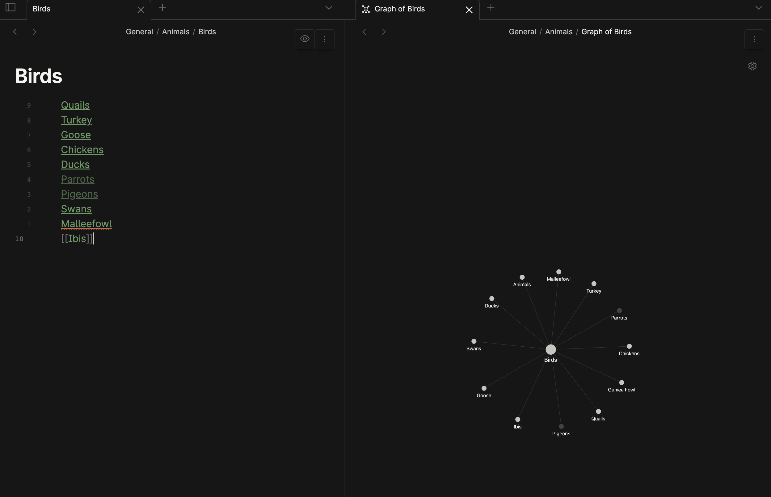 myVault/Unorganised/Quails.md;myVault/General/Animals/Turkey.md;myVault/General/Animals/Goose.md;myVault/Chickens.md;myVault/General/Animals/Ducks.md;myVault/Unorganised/Swans.md;myVault/General/Animals/Malleefowl.md;myVault/Unorganised/Ibis.md