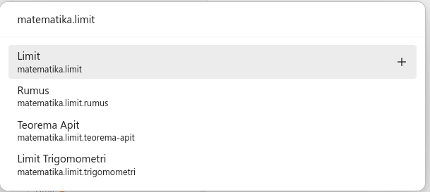 You can also select a note that does not have a corresponding file. An item that when selected will create a new note is indicated by + icon at the right.