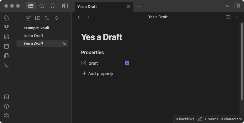 Draft Indicator updates the file explorer to show a wee ✎ pencil icon next to any note with draft: true in its frontmatter. It also italicizes the note name.