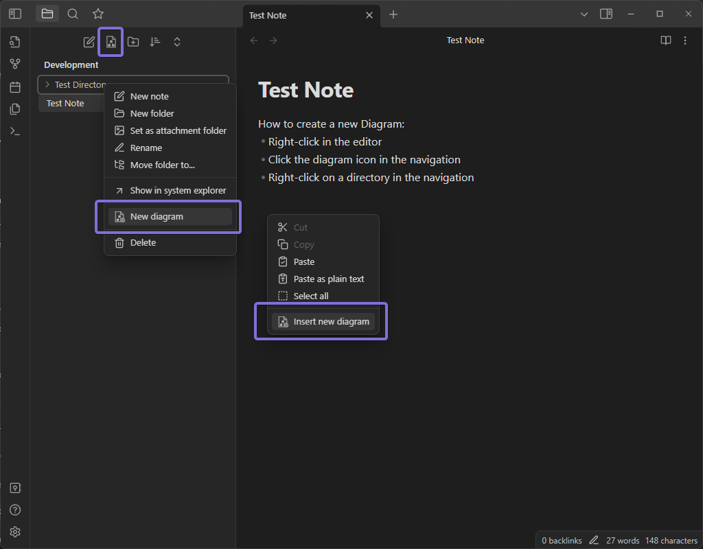This plugin introduces diagrams to Obsidian that can be included within notes or as stand-alone files. Diagrams are created as SVG files (although .drawio extensions are also supported).