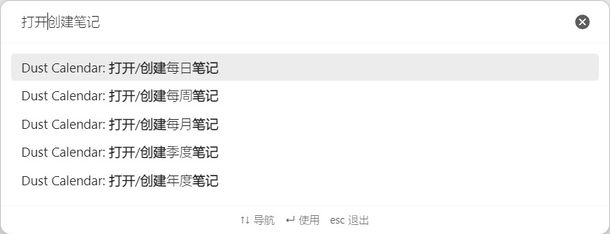 Dust Calendar 是一款更符合中国习惯的 Obsidian 插件,它提供了日历浏览以及与日历联动的周期性笔记功能。