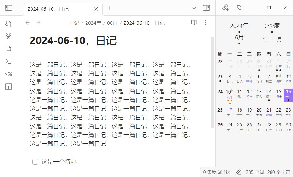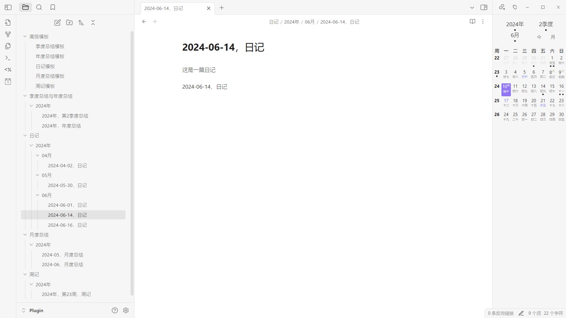 更符合中国习惯的日历插件,支持同时显示公历、农历、星期、节气、节假日、调休等信息,支持切换月视图和年视图,支持关联创建周期性笔记。周期性笔记包括:每日笔记、每周笔记、每月笔记、季度笔记、年度笔记。