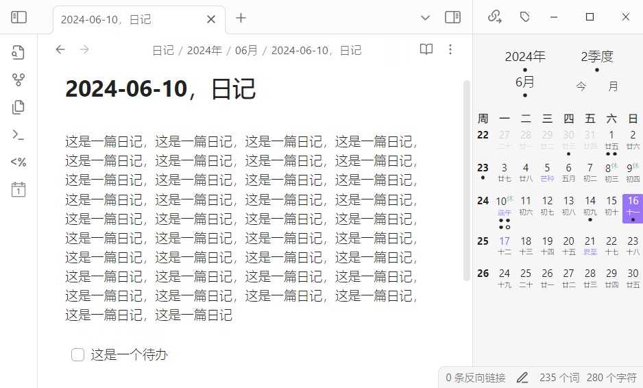 - 创建每日笔记:在月视图下双击日期;