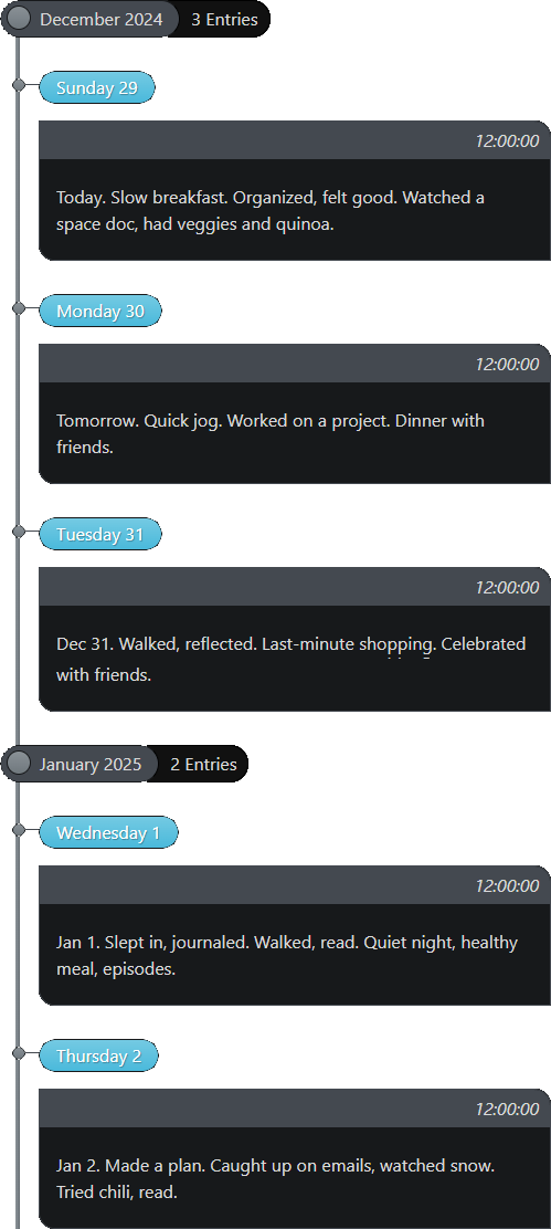 The Easy Timeline plugin for Obsidian allows you to create timelines easily. It’s inspired by the historica plugin, and it’s designed for those who need a simple way to visualize events over time. It allows references in properties to be used by relative dates.