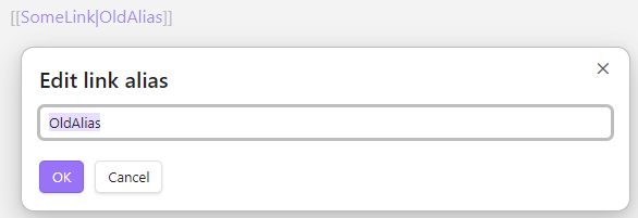 This is a plugin for Obsidian that adds edit link alias command.