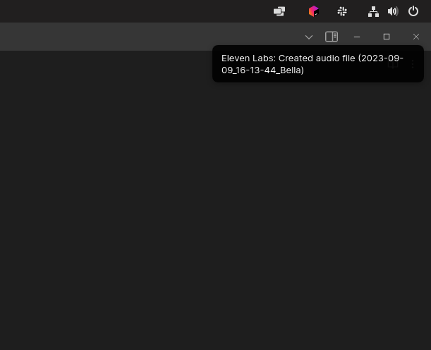 Now you can generate your audio, by pressing the "Generate audio" button. This will happen in the background and can take a few minutes depending on the number of characters being processed. You will get a notification once the audio has been generated and downloaded to your vault.
