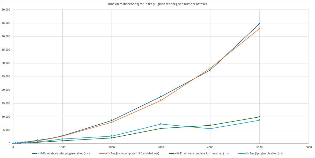 Emoji shortcodes has an issue where it slows down the Tasks and Dataview plugins by a huge amount.