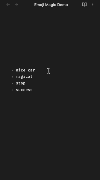 - Started breaking for me (might be a "live preview" only bug). Would insert emoji at the start of the file instead of where my cursor is. (Update: appears fixed in v0.4.0 or earlier)