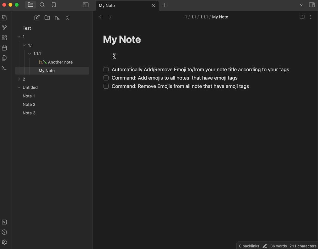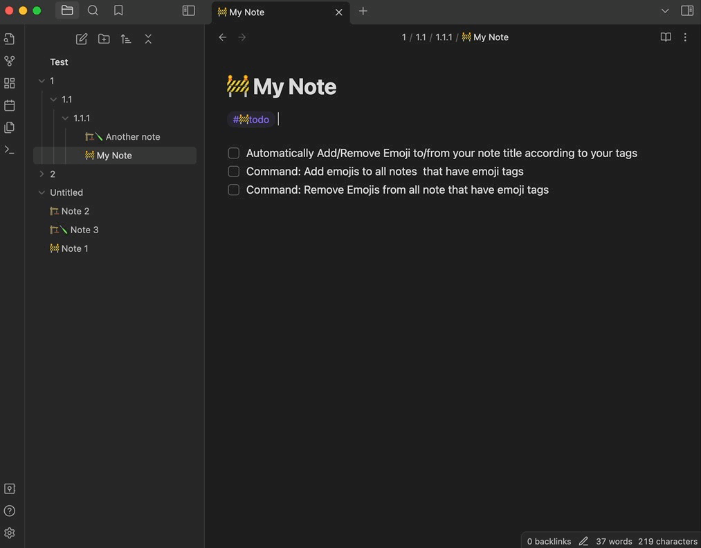 Add emoji to the title of notes with emoji tags. If you find this helpful, please buy me a coffee.