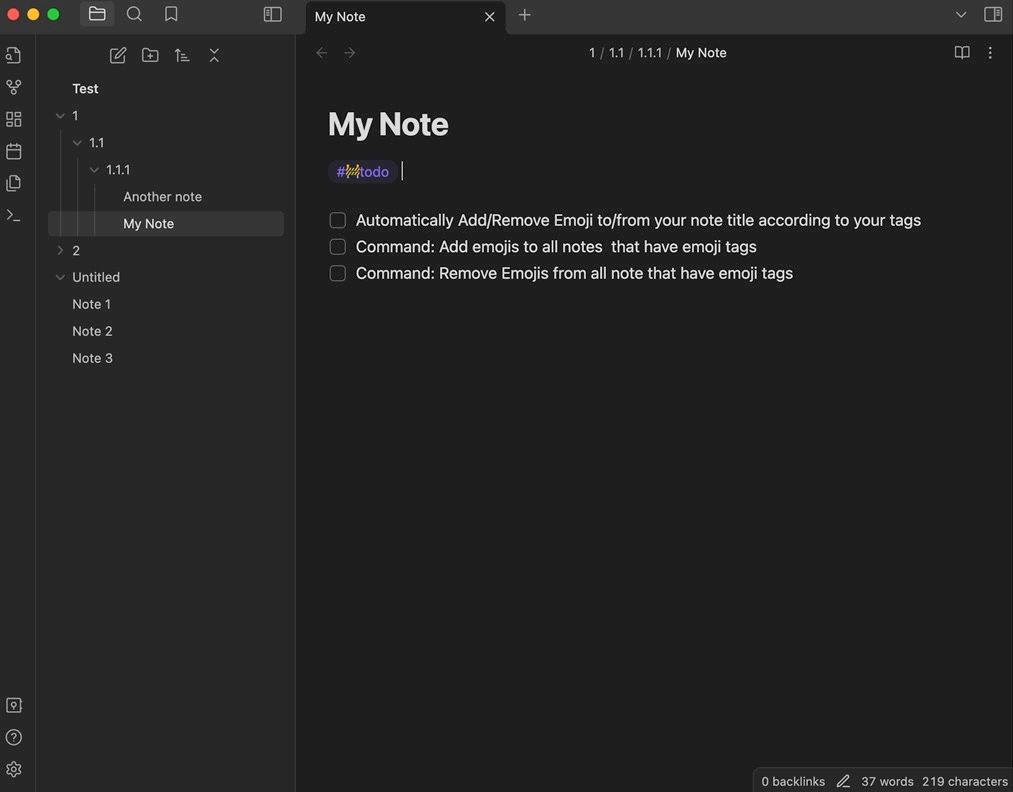 Add/Remove Emoji in your note tags to the title