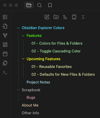 - An option to set a color for any file or folder by right-clicking on in item in the Obsidian Explorer and selecting