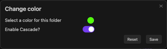 Set X Colorfrom the context menu. - Ability to toggle cascading colors on/off for each item tree.