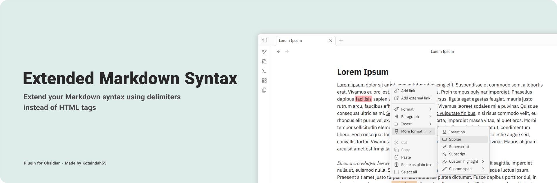 Extended Markdown Syntax - Obsidian Plugin
