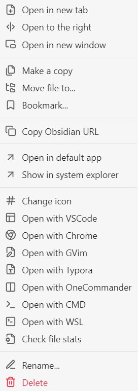 - Open file/folder with...: Open file or folder in the file explorer with custom program.