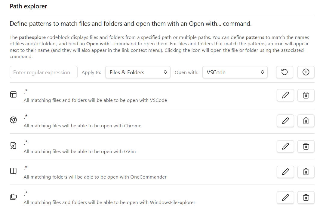 NOTE: Refer to the Open With and pathexplorer sections for additional settings.