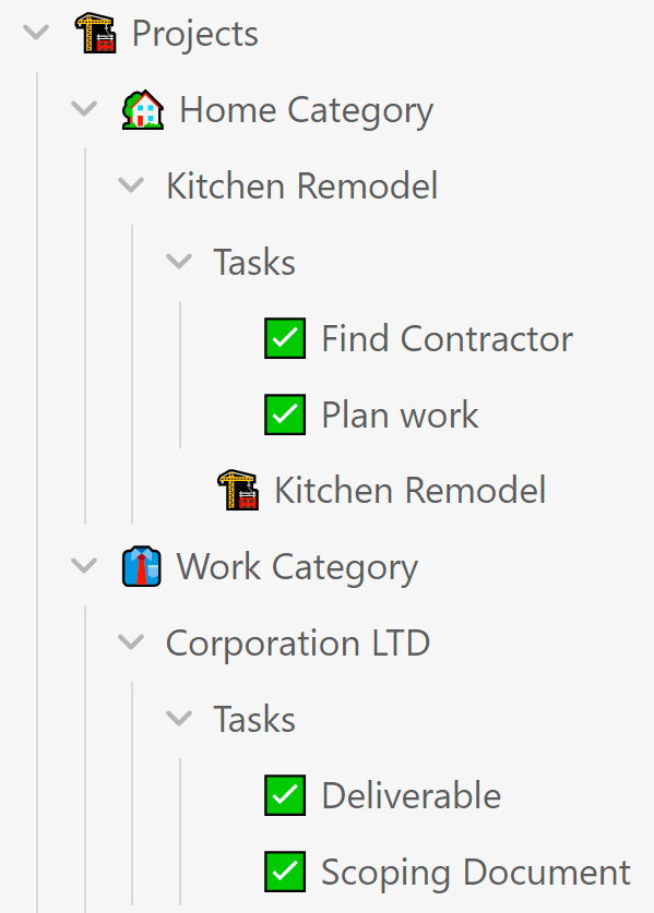 If you select "👔 Work Category" it will recurse and show the notes inside the folder: