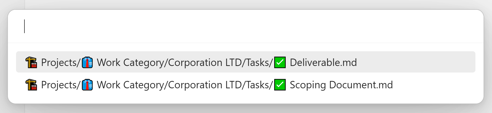 The flat picker "flattens" the folders of all the notes. If a Note Filter Set matches items that contain the "🏗" emoji: