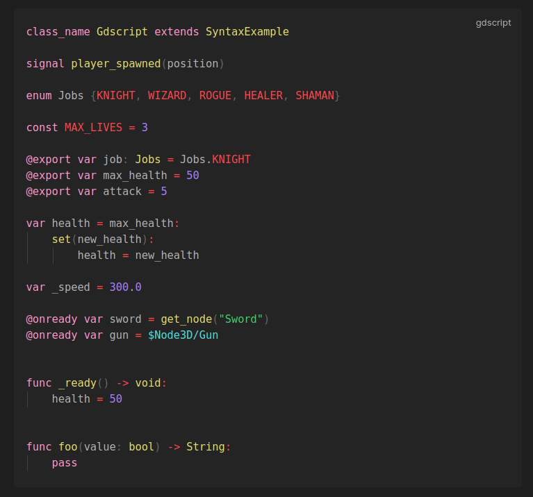 Add live GDScript syntax highlighting to code block.