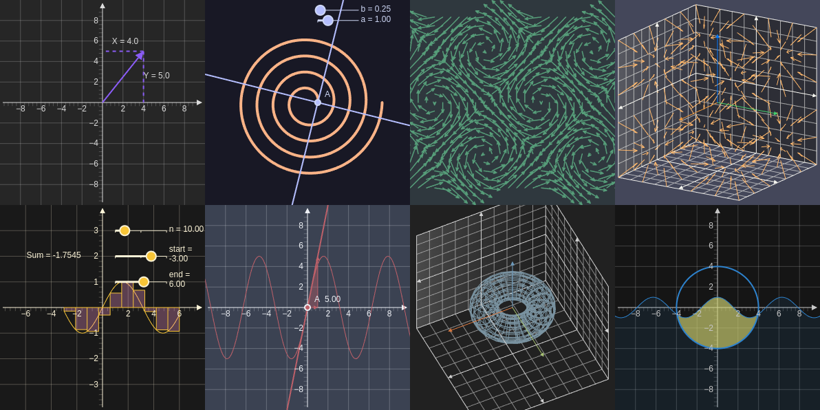 - Built in graph types (circle, derivative, vector fields, etc.)