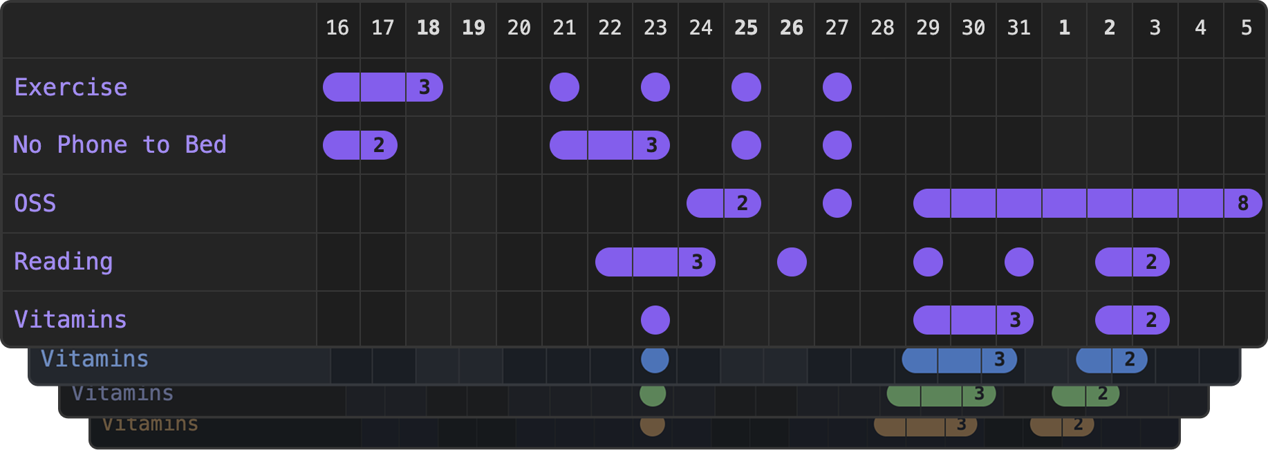 Transform your Obsidian vault into a habit-building powerhouse. Track daily habits with an intuitive grid interface, customize your tracking experience, and watch your consistency streaks grow over time.